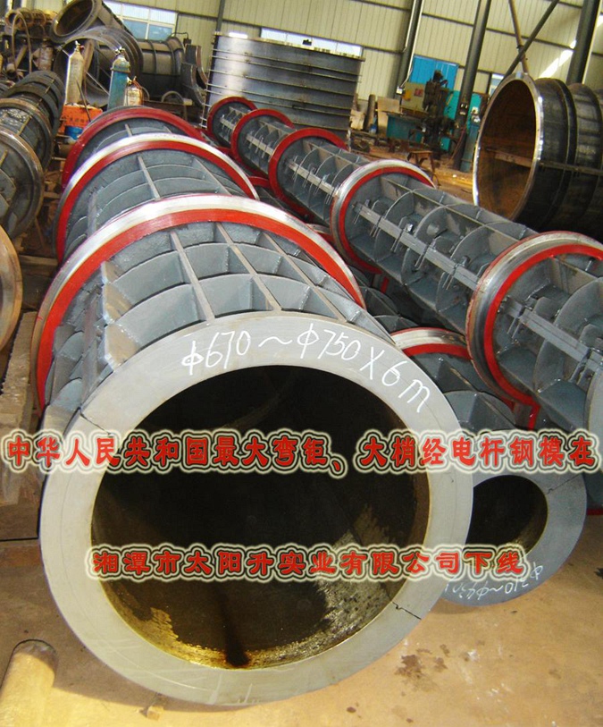 中華人民共和國最大大彎矩、大梢經(jīng)電桿鋼模在湘潭市太陽升實業(yè)有限公司下線